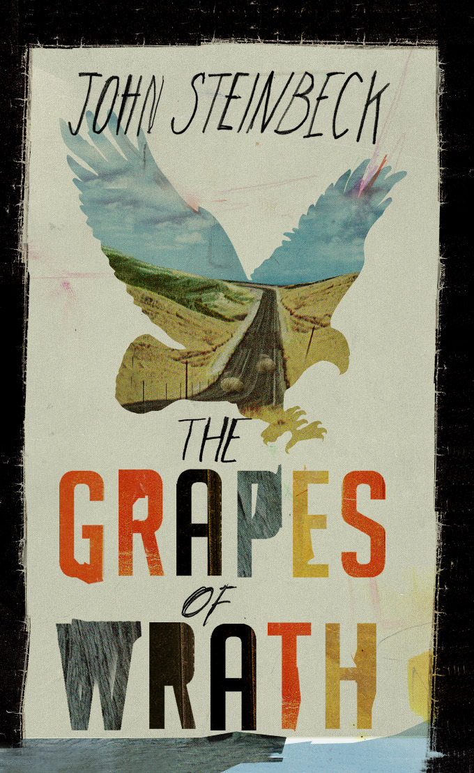 Les romans eux mêmes m’ont inspiré ! Les histoires sont très sombres et se déroulent pendant la grande dépression, j’ai donc décidé d’utiliser cette couleur noir d’un vieux magazine, comme la couleur de base dans ces livres. J’ai volontairement gardé cet effet vintage et « usé ».