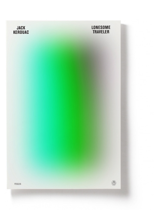 Il s’est attaqué aux romans de Jack Kerouac, à savoir, Sur la route, Le Vagabond solitaire et Les Clochards célestes. On se demande ce qui a bien pu passer par la tête de ce garçon lorsqu’il a réalisé ces couvertures. Il explique en fait que le côté flou est une référence à la façon spontanée qu’à Kerouac d’écrire. Il est vrai que si l’on y réfléchit un peu plus, le côté céleste, ça peut tout à fait coller avec cette sorte de nébuleuse violette. On peut aussi voir une sorte d’aurore boréale couchée sur papier.