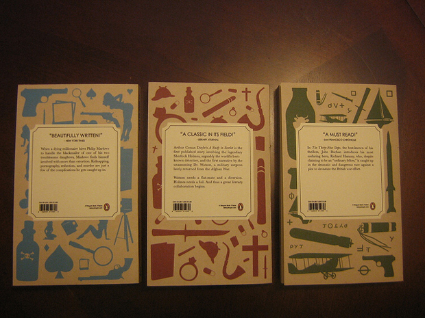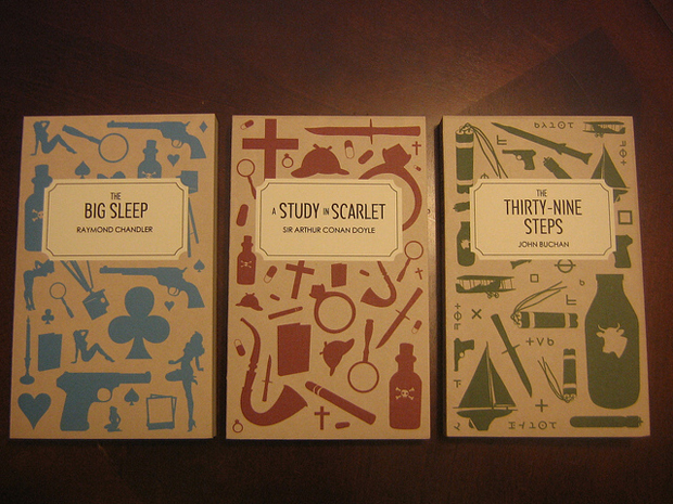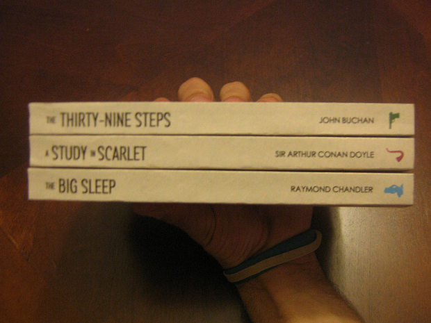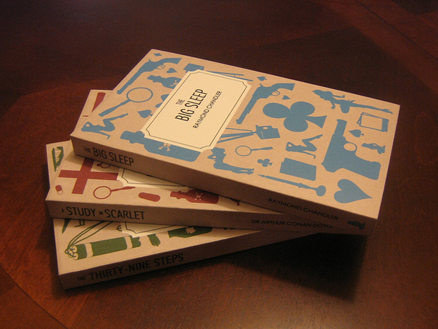 La collection en question concerne trois ouvrages, avec chacun un auteur différent. On retrouve donc, The Big Sleep de Raymond Chandler, A Study in Scarlet d’Arthur Conan Doyle et The Thirty-Nine Steps de John Buchan.