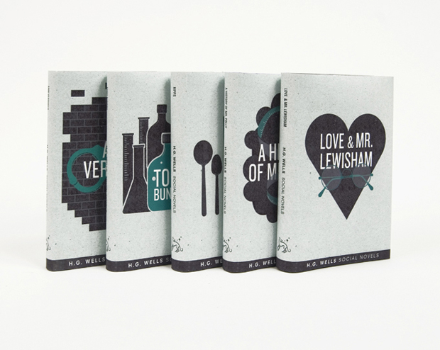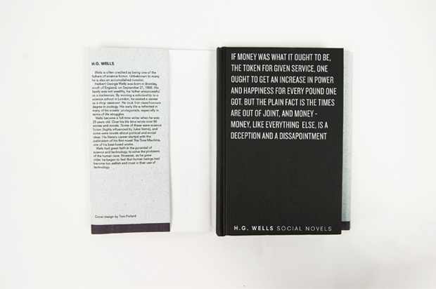 Dans le cadre des student awards du club des directeurs artistiques, D&AD, Tom Pollard a suivi le brief (en partenariat avec Orion Books) consistant à réaliser une collection pour les ouvrages d’H.G. Wells.