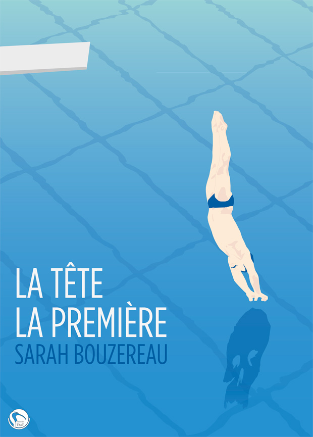 Malgré tout, je restais persuadé de pouvoir proposer quelque chose de moins consensuel, une image qui pourrait jouer avec le titre de l’ouvrage, La Tête la première. C’est donc à partir de là que je me suis rappelé l’importance du personnage du commissaire Ratiniez, arborant fièrement une moustache, accro aux piscines municipales, et clé de voute de l’ensemble du récit.