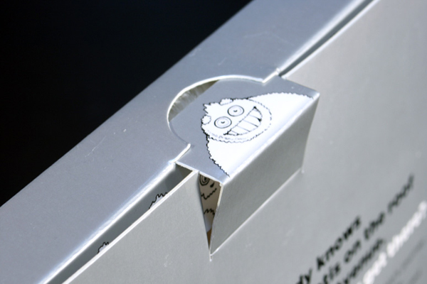 On remarquera par ailleurs que l’effet fourrure est visible même sans sortir le livre de sa boîte, puisqu’une découpe sur le devant, coïncidant avec le ventre d’un yéti laisse apparaître quelques faux poils.