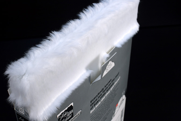 Réalisé pour la boutique Saks, ce livre illustré a été assez simple à réaliser puisqu’Harper Collins n’en est pas à son premier essai pour les couvertures en fourrure. Un livre objet plutôt réussi si ce n’est qu’une fois la boîte ouverte, il n’est plus si évident de savoir s’il s’agit de la première ou et de la quatrième de couverture !