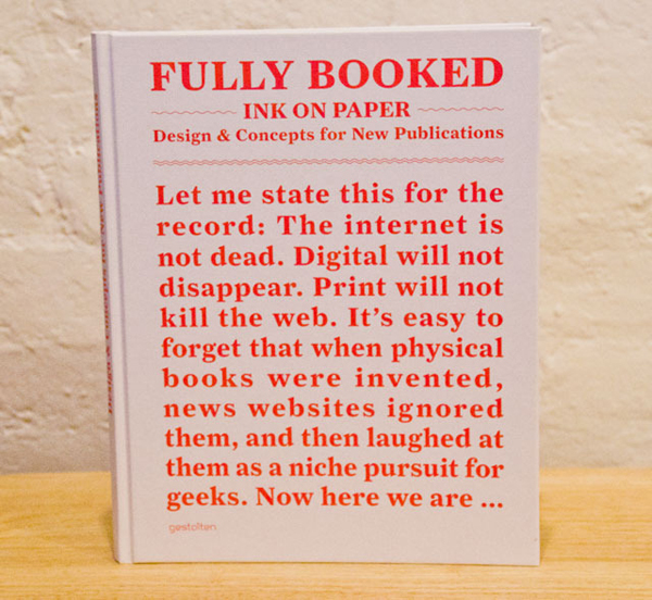 Le plus impressionnant est sans aucun doute, Fully Booked : Ink on Paper, sorti chez Gestalten il y a peu. Le bouquin est immense (24x30cm) et avec sa couverture rigide et ses 280 pages, il en impose pas mal !