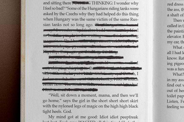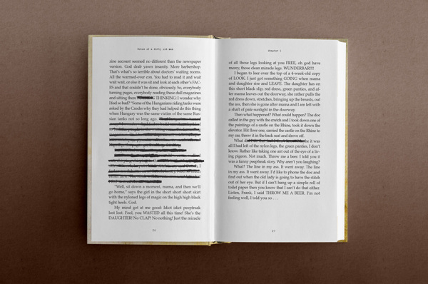 Mention spéciale au soin apporté aux pages intérieures. On aperçoit des morceaux de texte raturés, des traces de verres que l’auteur aurait laissé trainer sur son manuscrit… Une bonne idée !