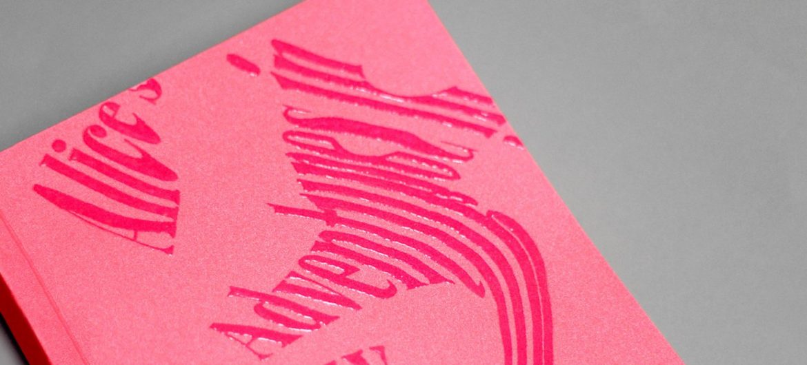 Le graphiste mancunien, Callum Dawes, a été commissionné par la marque de papier GF Smith pour mettre en avant leurs produits et concevoir une nouvelle mise en page d’Alice au pays des merveilles.